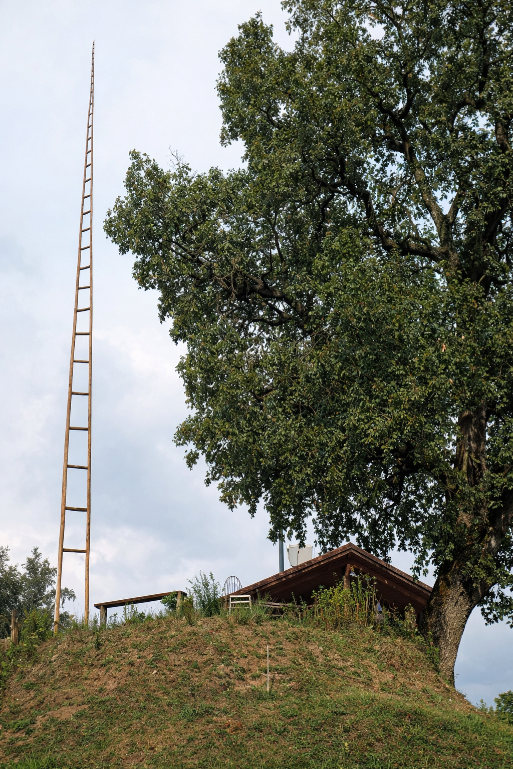 Refugi del cel és una acció-instal·lació inspirada en el símbol que hi ha gravat en una llosa de l’era del Bagatell i en la topografia del paisatge i el seu entorn.